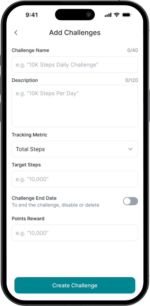 Launch custom wellness challenges that motivate teams and drive healthy competition.